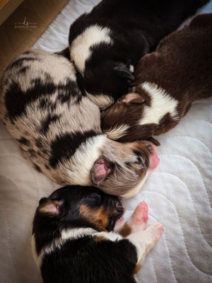 diese wunderschöne, farbprächtig gezeichnete Hündin hat eine angenehme mittlere Energie